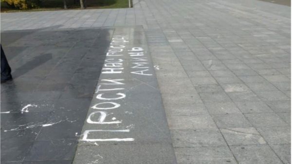 Очевидцы также рассказали, что рядом на плитке написано: «Прости нас, Господи. Аминь».